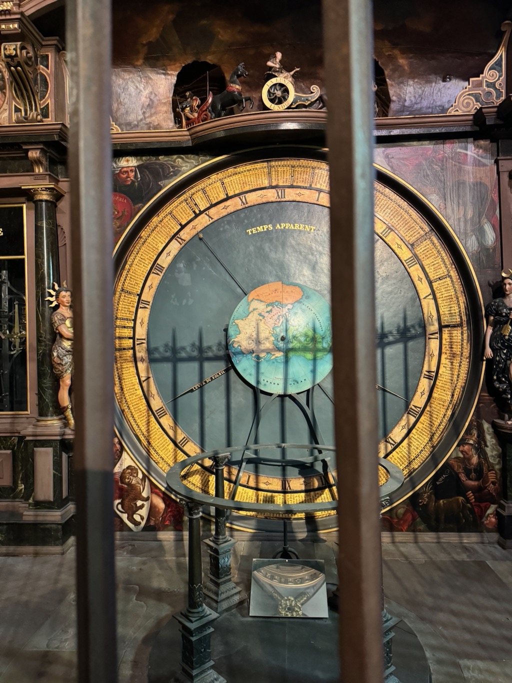 Inside the cathedral, beyond the remarkable stained glass, we encountered something entirely unexpected and mesmerizing: the Astronomical Clock (Horloge astronomique). At first glance it feels almost theatrical—moving figures, sound, and motion—but this is no decorative novelty. It is a fully functioning scientific instrument, completed in 1843 and still operating today.