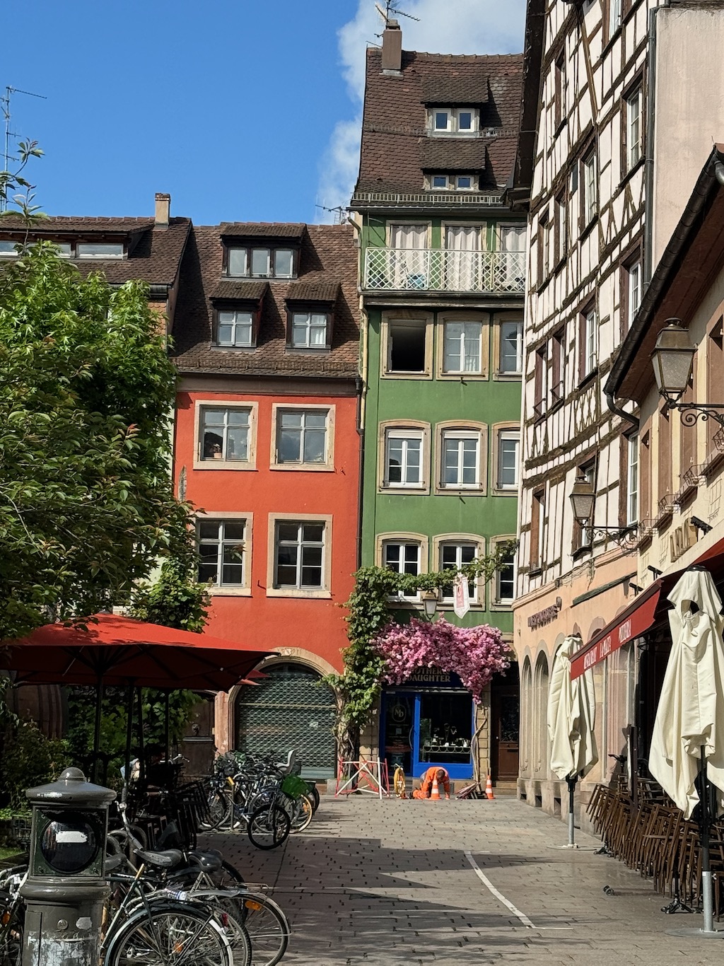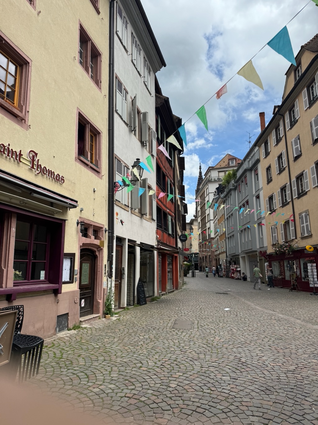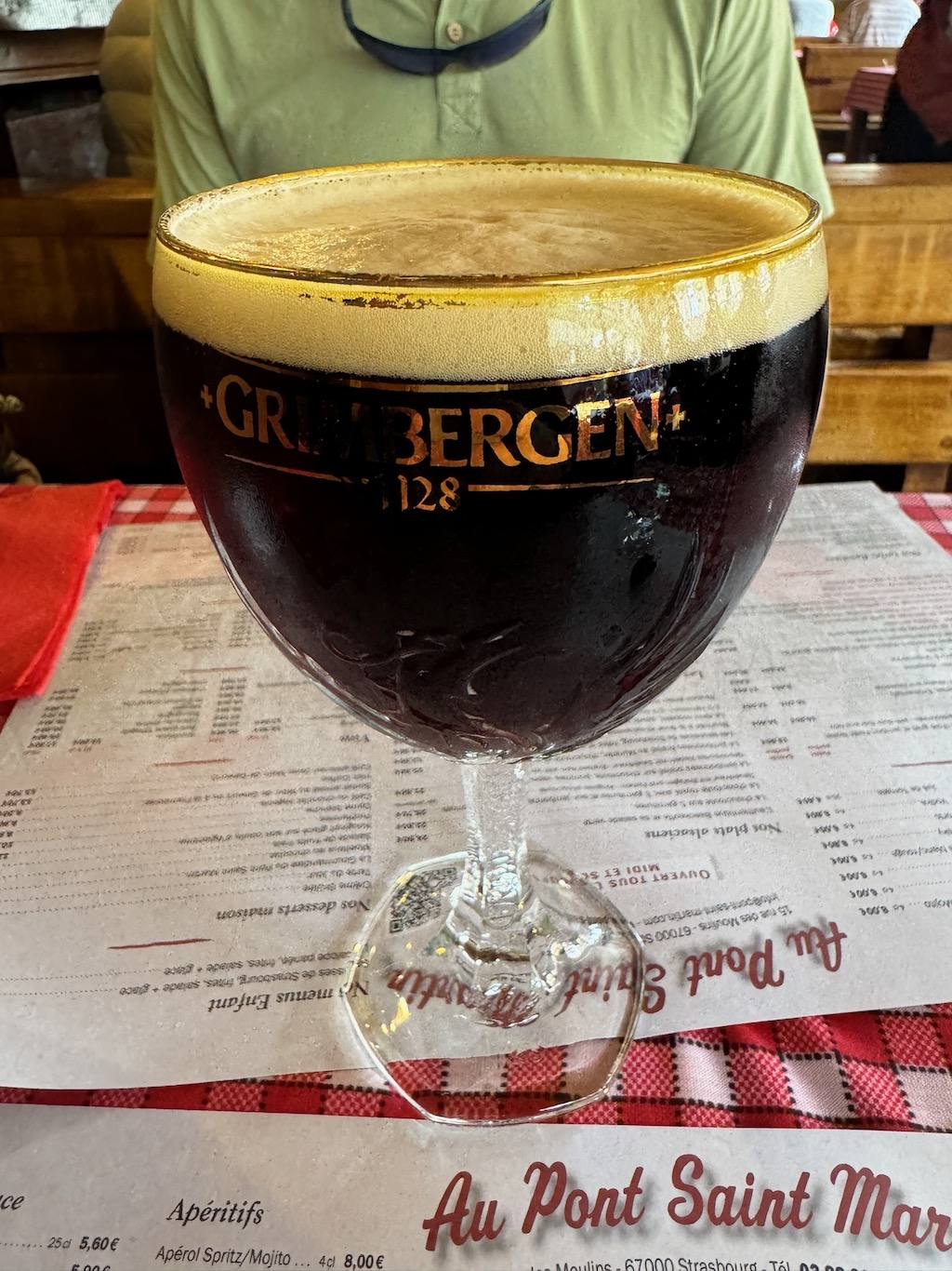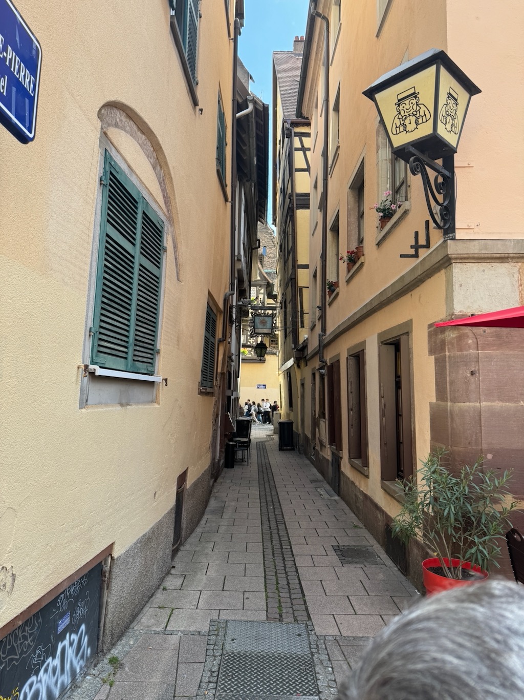 After the tour, we circled back through La Petite France for window shopping and lunch. The Viking River Cruises guides were exceptional—we learned that some even hold PhDs, which explains the depth and richness of the storytelling throughout the day. We ate right on the water at La Corde à Linge—which translates to The Clothesline, a reference to when laundry was once hung between buildings over the canals. Cobblestones underfoot, pastry shops everywhere, and of course, another cappuccino made for a magical day.