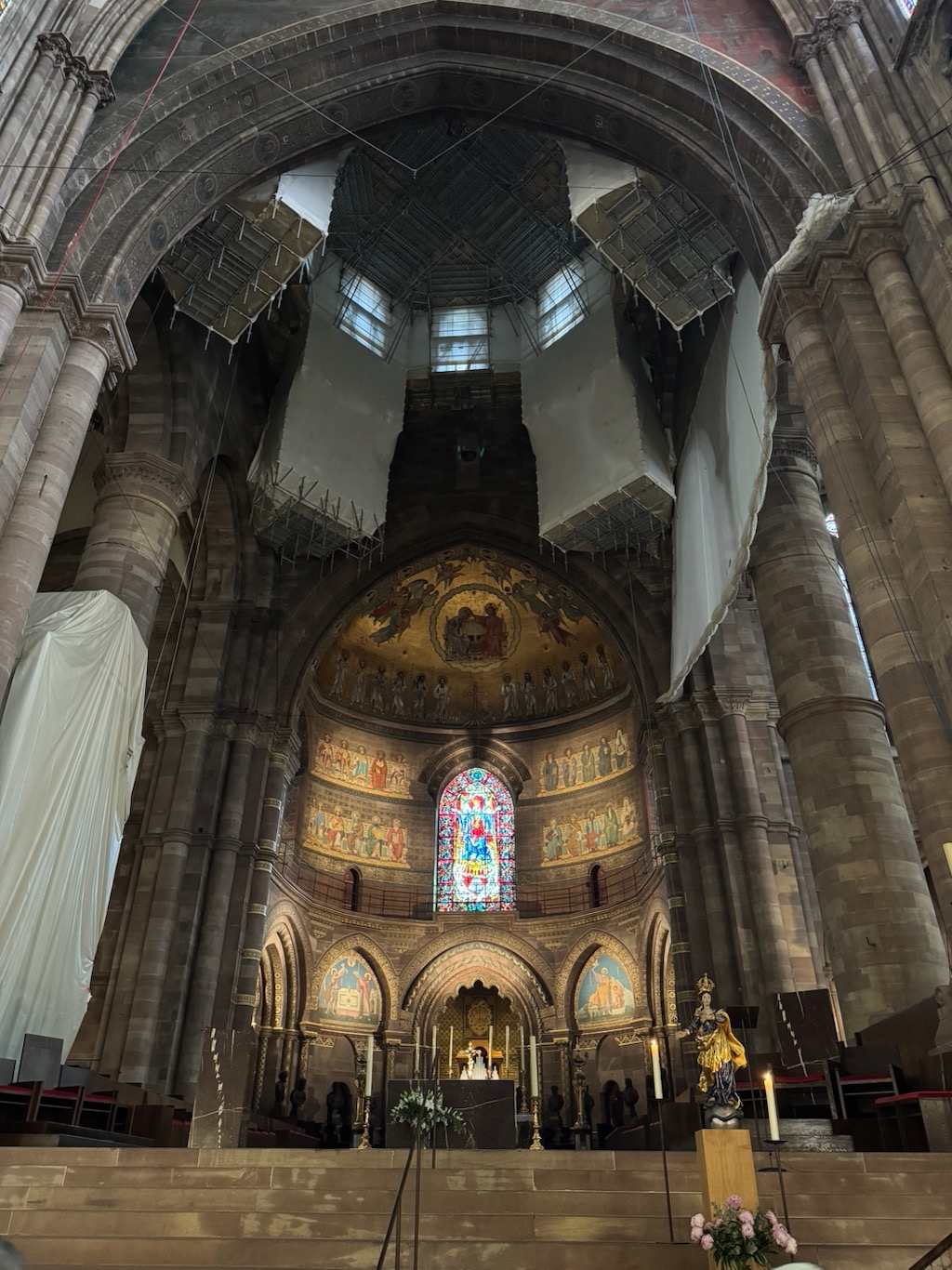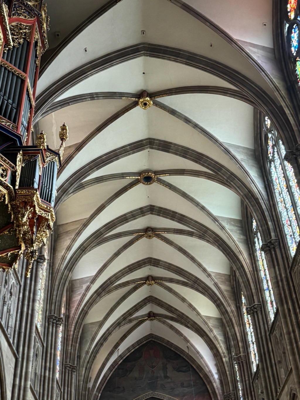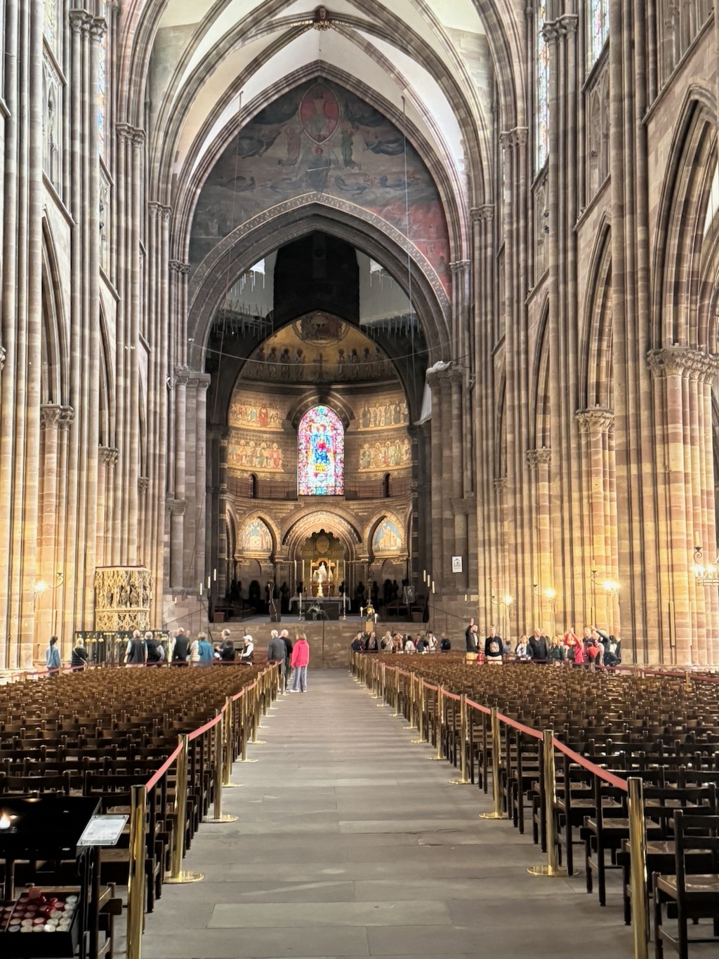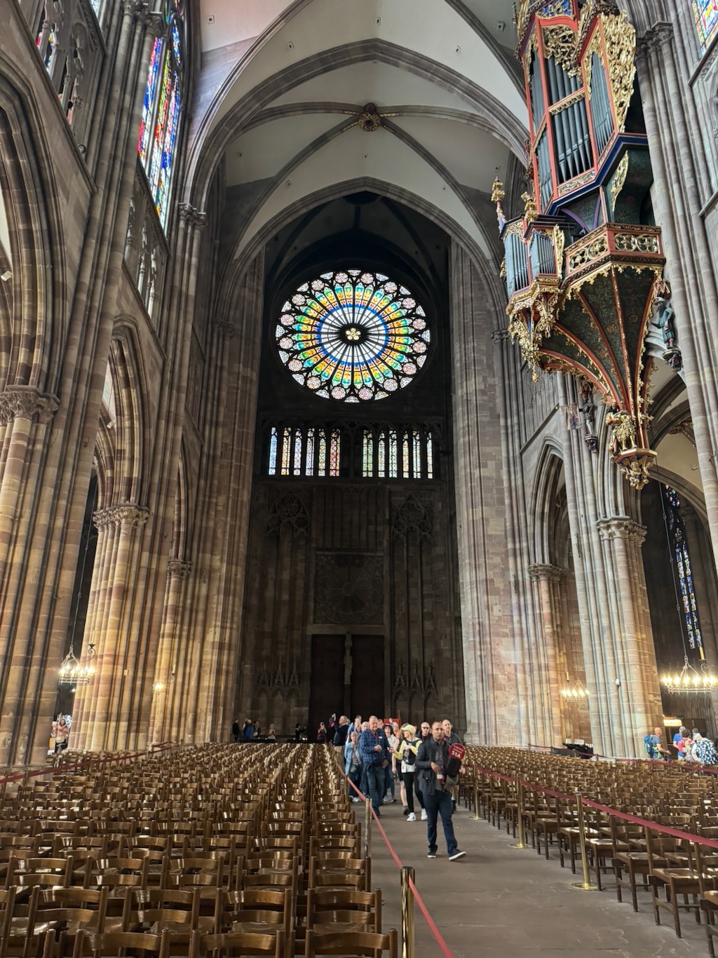 Today we stepped right off the ship and into town for a guided walking tour, our first stop being the Strasbourg Cathedral. For 227 years, it held the title of the tallest building in the world. Builders began construction in the year 1015—that date alone feels almost impossible to grasp—and craftsmen continued modifications and additions all the way through 1874. Designers originally planned two towers, but builders completed only one, giving it its distinctive silhouette.
