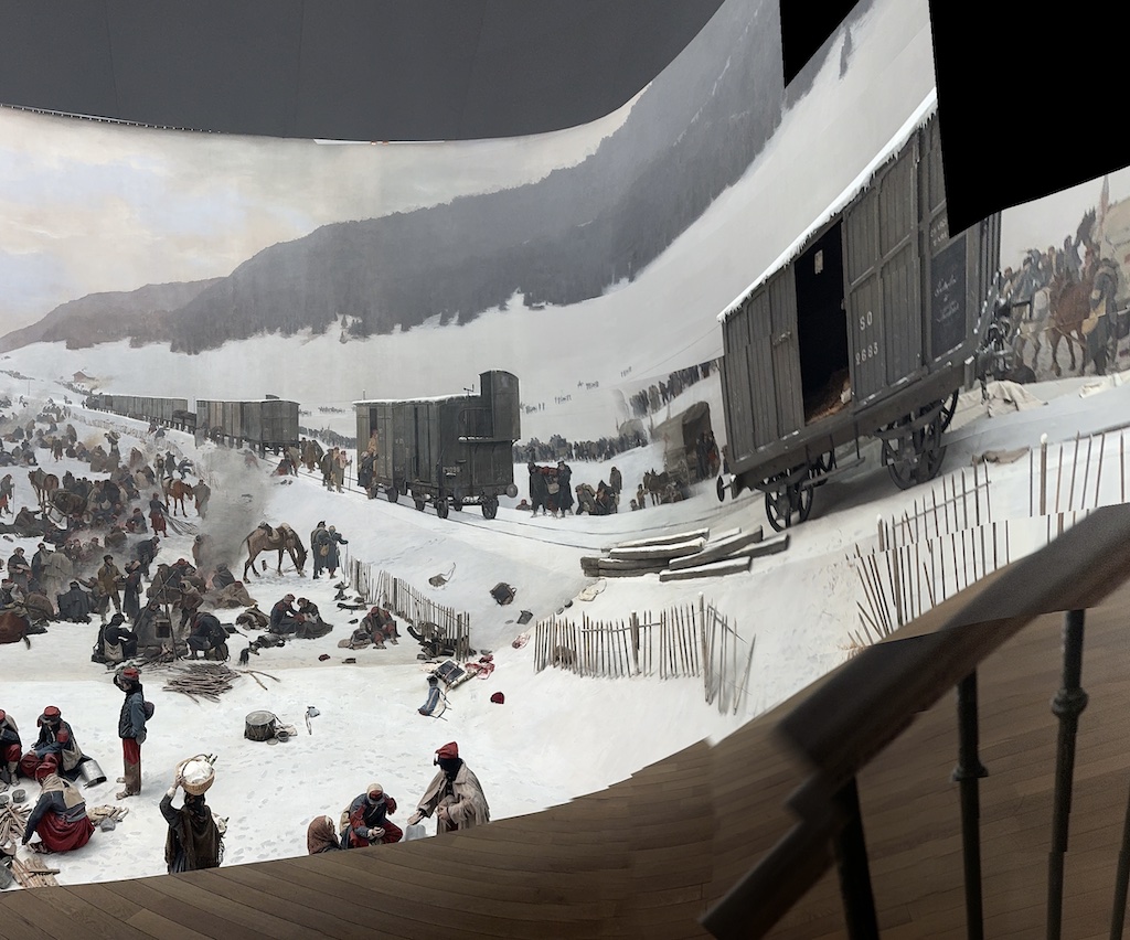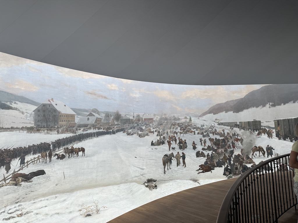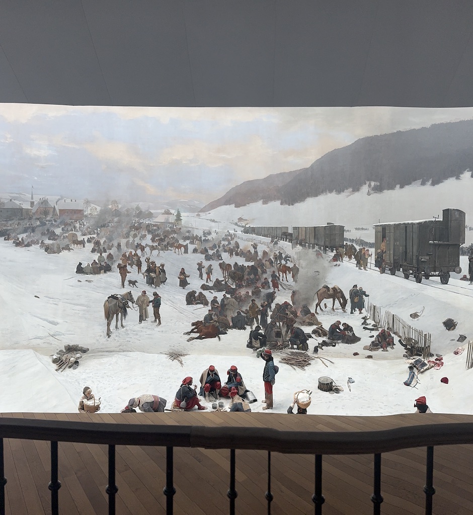 The Bourbaki Panorama was painted in 1881 by Swiss artist Edouard Castres, who had witnessed the event firsthand as a young Red Cross volunteer. A decade later, he returned to the story with a team of ten artists, creating a monumental circular painting—367 feet long and 33 feet high—to honor what had happened.