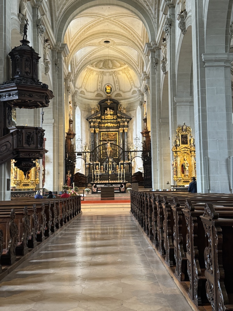 Headed back to our hotel, we stopped into the Church of St. Leodegar (Hofkirche), Lucerne’s grand Renaissance church with its gold altars and heavy carved wood.