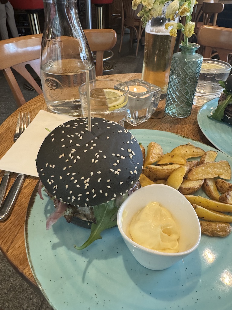 I kept dreaming of that spicy matcha drink. This time we dined on burgers. Ron had a beer. We absolutely loved this place. Check out my previous post to learn more about the restaurant and the drink details.