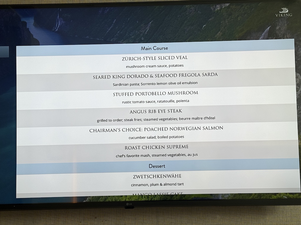 The food is excellent. The service is outstanding. And with Viking, there’s no upselling—ever. You choose your package when you book, and that’s it. Each day includes guided tours, with optional add-on excursions if you like. You simply board, eat, drink, and enjoy. There’s no need to reach for your wallet.