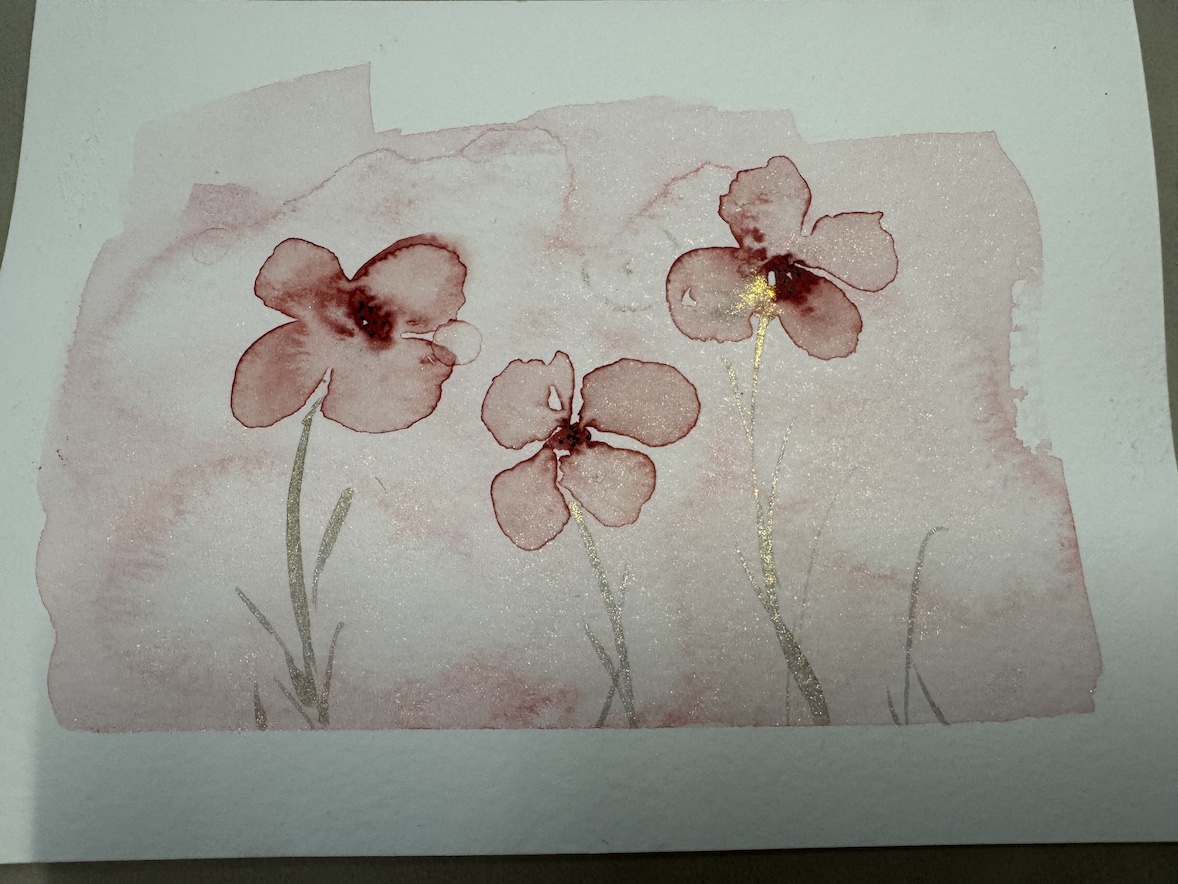 I learned about metallic watercolors from a vendor at a craft fair. I didn’t even know they existed!